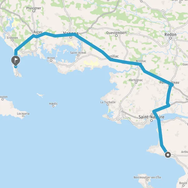 Tourner légèrement à droite sur D768 (Route de Quiberon) et continuer sur 2,1 kilomètres