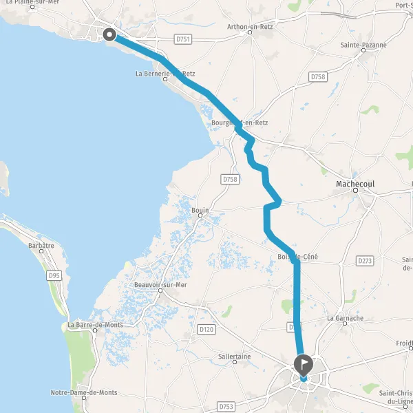 Au rond-point, prendre la 2ème sortie sur D58 (Rue de Challans) et continuer sur 8,3 kilomètres