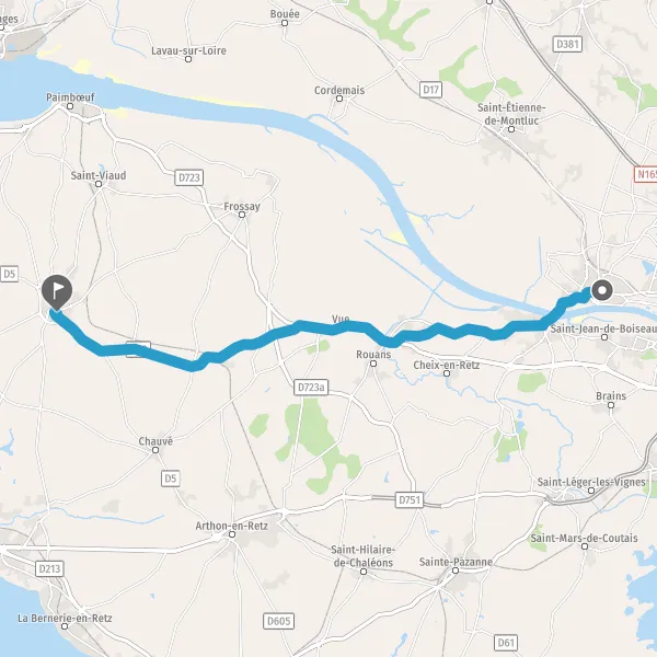 Au rond-point, prendre la 1ère sortie sur D723 (Route de Paimbœuf) et continuer sur 950 mètres