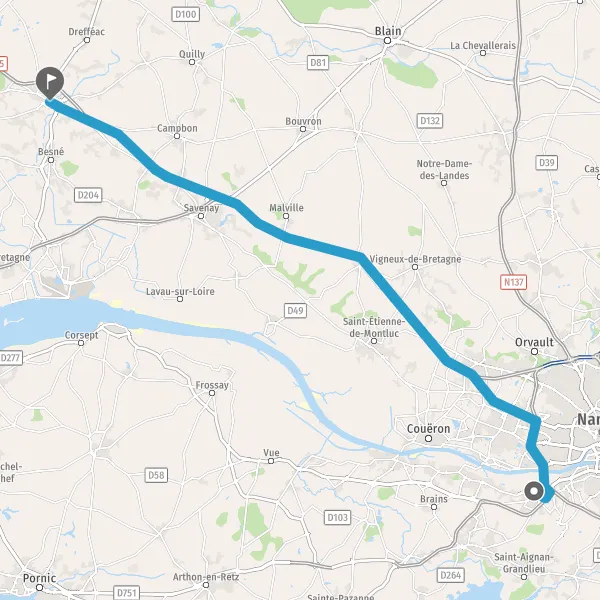 Prendre à droite et rejoindre D723 (Route de Pornic). Continuer sur 600 mètres