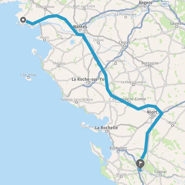 Prendre à droite et rejoindre A83. Continuer sur 150 kilomètres