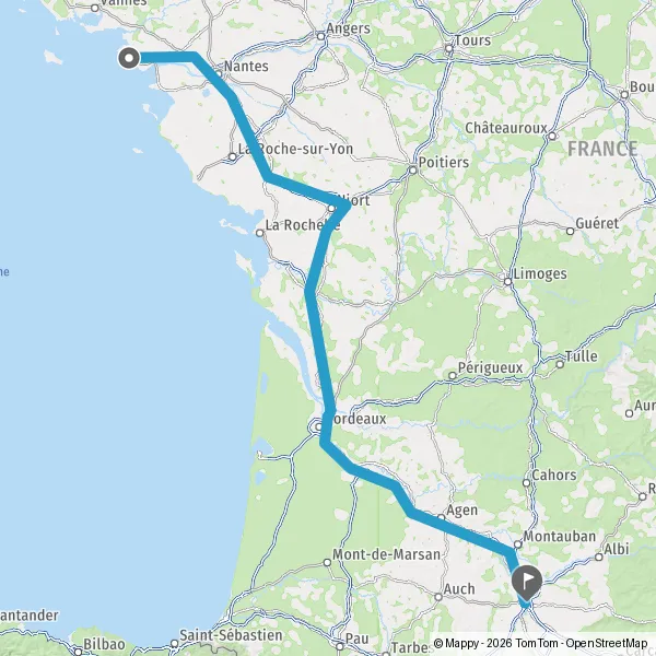Prendre à gauche et rejoindre A62 E72. Continuer sur 224 kilomètres
