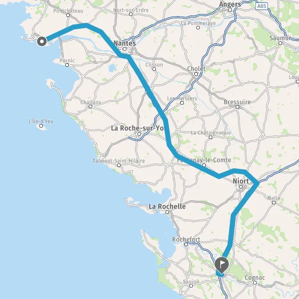 Prendre à droite et rejoindre A83. Continuer sur 150 kilomètres
