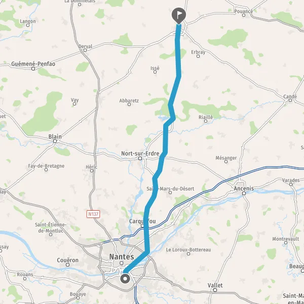Tourner à droite sur D33 D24 (Rue de l'Erdre) et continuer sur 150 mètres