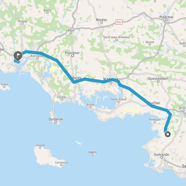 Prendre à droite et rejoindre N165 E60 (Chemin des Oiseaux). Continuer sur 79 kilomètres