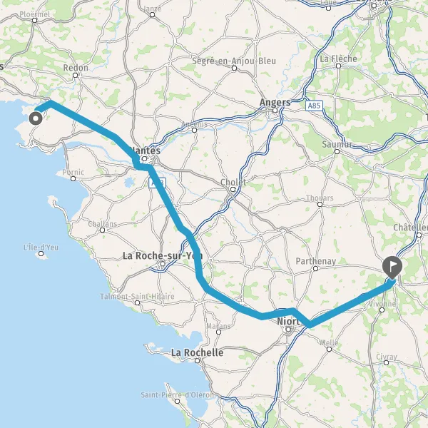 Prendre à droite et rejoindre A83. Continuer sur 150 kilomètres