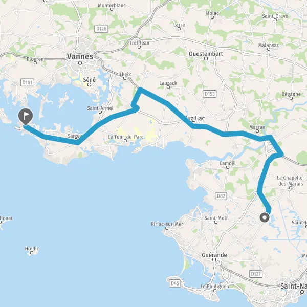 Au rond-point, prendre la 2ème sortie sur D20 (Route de Sarzeau) et continuer sur 1,9 kilomètre