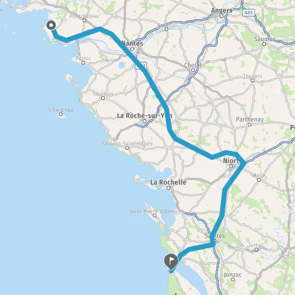 Prendre à droite et rejoindre A83. Continuer sur 150 kilomètres