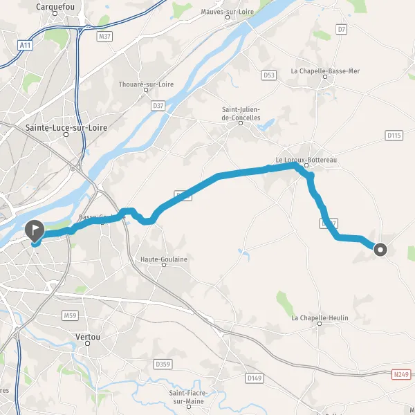 Au rond-point, prendre la 2ème sortie sur D115 (Route de la Goulaine) et continuer sur 4,6 kilomètres