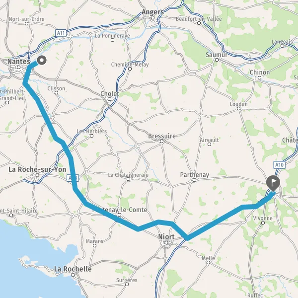 Prendre à droite et rejoindre A83. Continuer sur 150 kilomètres