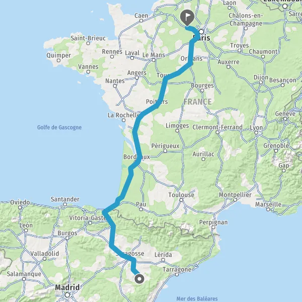 Payer 2,00 € (Péage Biriatou) Autoroute de la Côte Basque Payer 2,80 € (Péage La Negresse) Payer 4,30 € (Péage Benesse) Payer 4,40 € (Péage Castets) Payer 4,40 € (Péage Saugnacq-et-Muret) 385 km