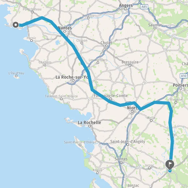 Prendre à droite et rejoindre A83. Continuer sur 150 kilomètres
