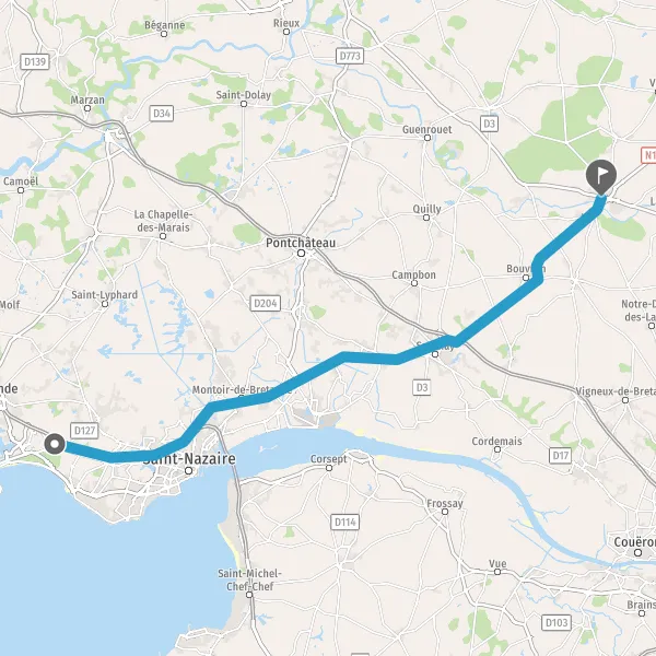Au rond-point, prendre la 2ème sortie sur N171 (Route de Bouvron) et continuer sur 1,1 kilomètre