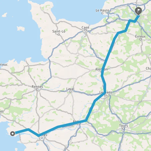 Prendre à droite et rejoindre A11 E60. Continuer sur 174 kilomètres