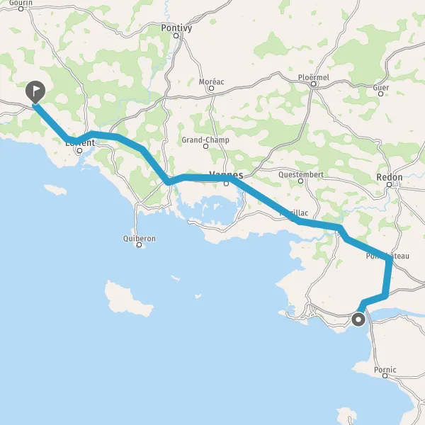 Prendre à droite et rejoindre N165 E60 (N165). Continuer sur 133 kilomètres