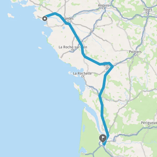 Avec le mode voiture, vous pouvez configurer vos options (type de véhicule, autoroute ou non, péage ou non, distance la plus courte), tout en ayant accès aux infos de circulation grâce à notre service d'info-trafic en temps réel. Ainsi faites des économies sur le coût ou la durée de votre voyage, en trouvant le trajet Saint-Nazaire Bordeaux adapté à vos besoins.