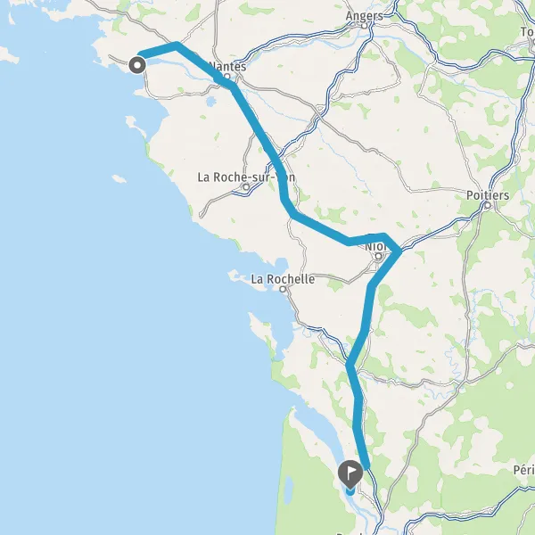 Prendre à droite et rejoindre A83. Continuer sur 150 kilomètres