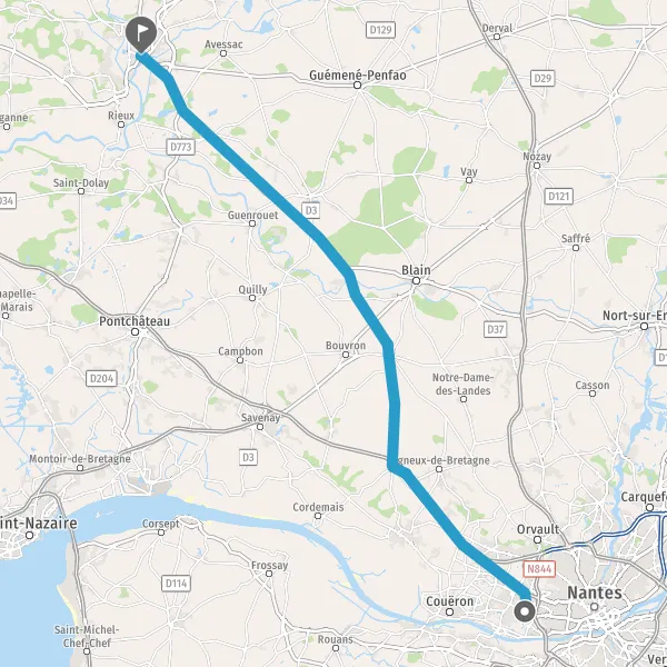 Au rond-point, prendre la 2ème sortie sur Rue de Nantes et continuer sur 1,6 kilomètre