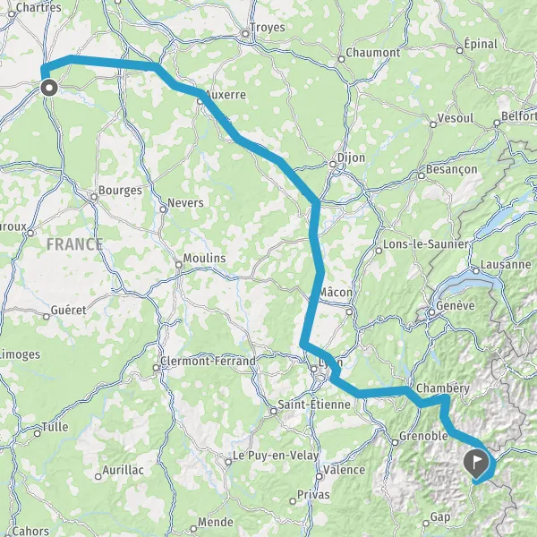 Prendre à droite et rejoindre A43 E70. Continuer sur 65 kilomètres