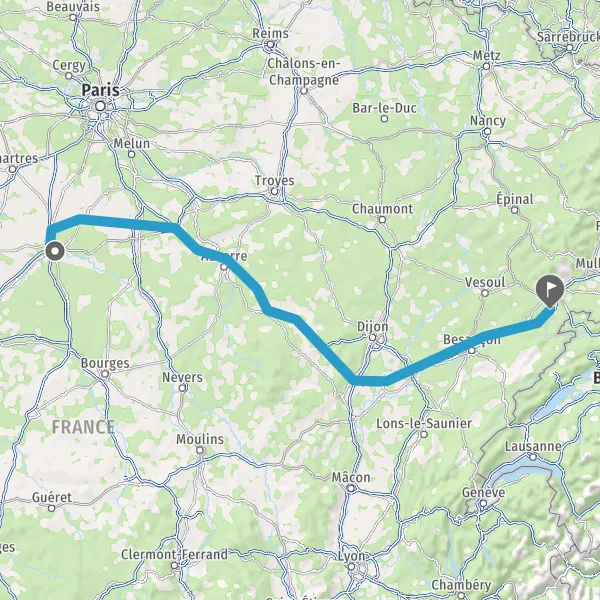 | Distance en voiture | 424 km à 486 km |