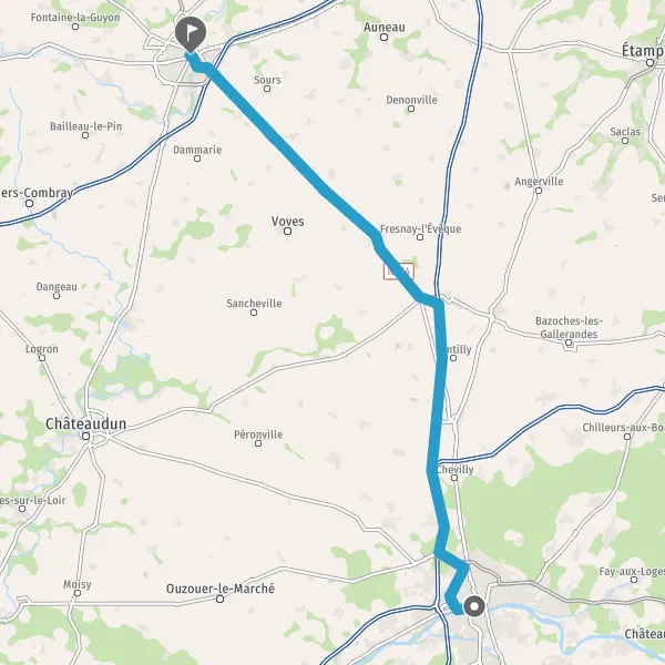 Prendre à droite et rejoindre La Route du Blé en Beauce. Continuer sur 90 mètres