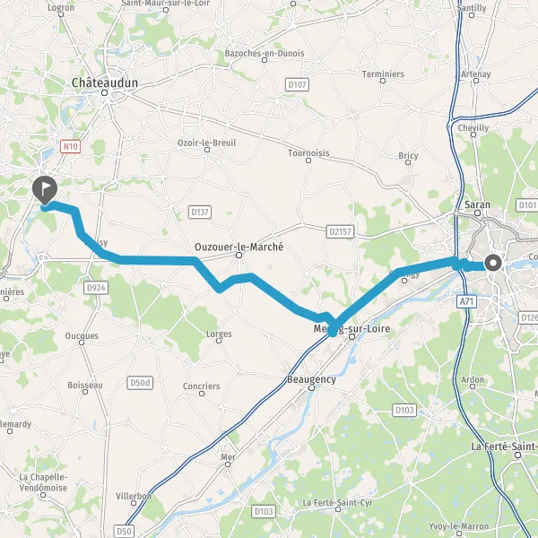 Au rond-point, prendre la 2ème sortie sur D2157 (Route d'Ormes à Saran) et continuer sur 20 kilomètres