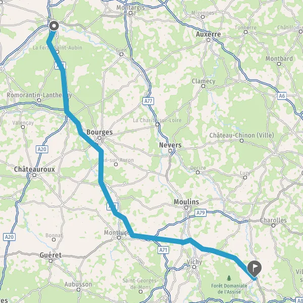 Continuer et rejoindre A71 E9. Continuer sur 72 kilomètres