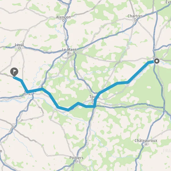 Prendre à droite et rejoindre A11. Continuer sur 25 kilomètres