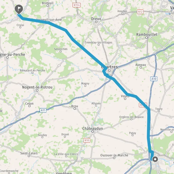 Tourner légèrement à droite sur D939 (Rue de Chartres) et continuer sur 11 kilomètres