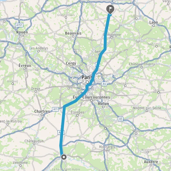 Prendre à droite et rejoindre A10. Continuer sur 91 kilomètres