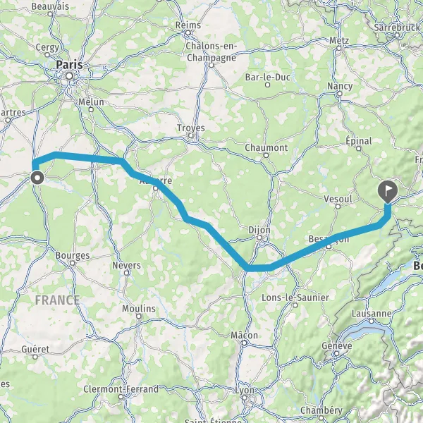 Prendre à droite et rejoindre A36. Continuer sur 165 kilomètres