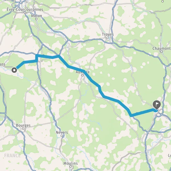 Prendre à droite et rejoindre A19 E60. Continuer sur 34 kilomètres