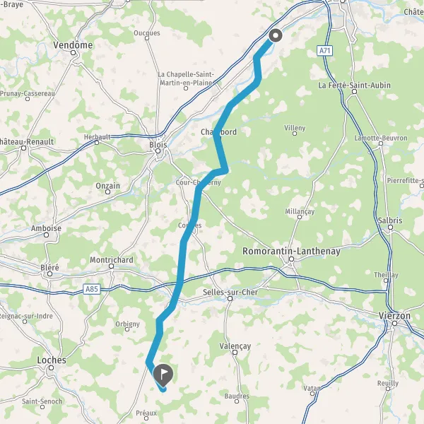 Au rond-point, prendre la 3ème sortie sur D102 (Rue de Cheverny) et continuer sur 1,1 kilomètre