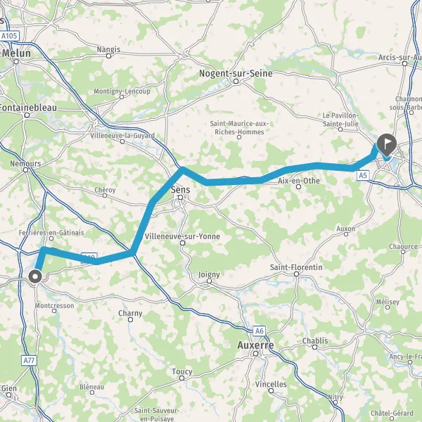 Prendre à droite et rejoindre A5. Continuer sur 50 kilomètres