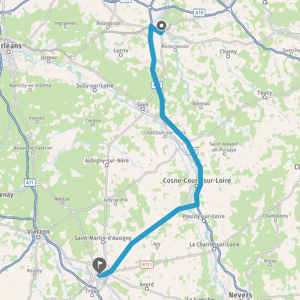 Tourner légèrement à droite sur D42 (Rue de Gien) et continuer sur 9,5 kilomètres
