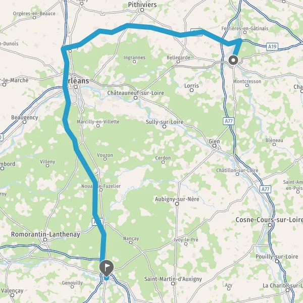 Tourner légèrement à droite sur D42 (Rue de Gien) et continuer sur 9,5 kilomètres