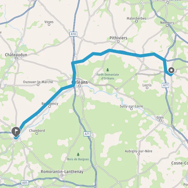 A77A19OrléansVillemandeurChâteauneuf-sur-LoirePithiviers