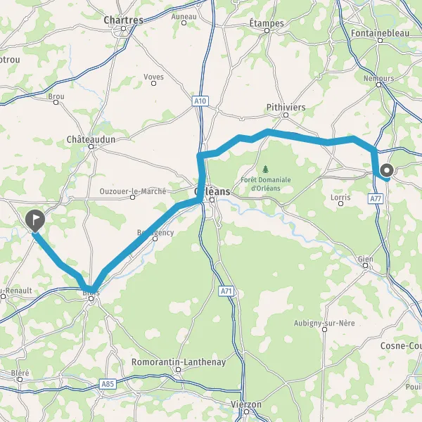 A77A19OrléansVillemandeurChâteauneuf-sur-LoirePithiviers