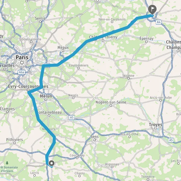 A77A19OrléansVillemandeurChâteauneuf-sur-LoirePithiviers