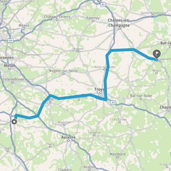 Prendre à droite et rejoindre A5. Continuer sur 70 kilomètres
