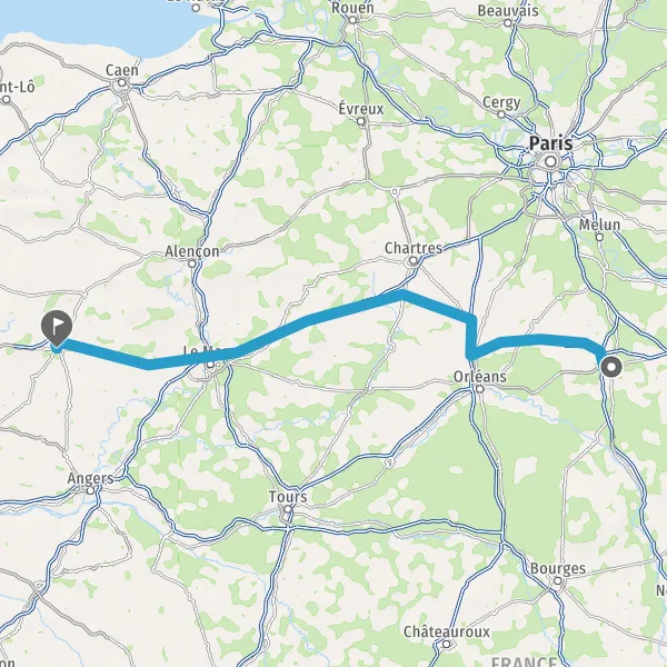 Prendre à gauche et rejoindre A11 E50. Continuer sur 105 kilomètres