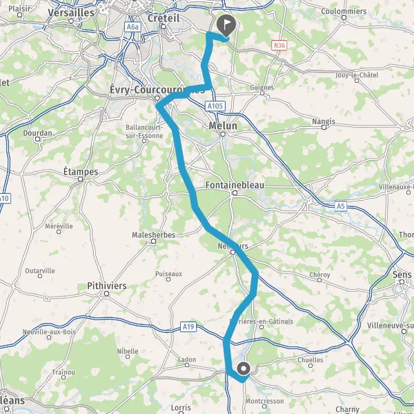 A77A19OrléansVillemandeurChâteauneuf-sur-LoirePithiviers