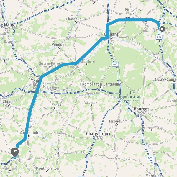 A77A19OrléansVillemandeurChâteauneuf-sur-LoirePithiviers