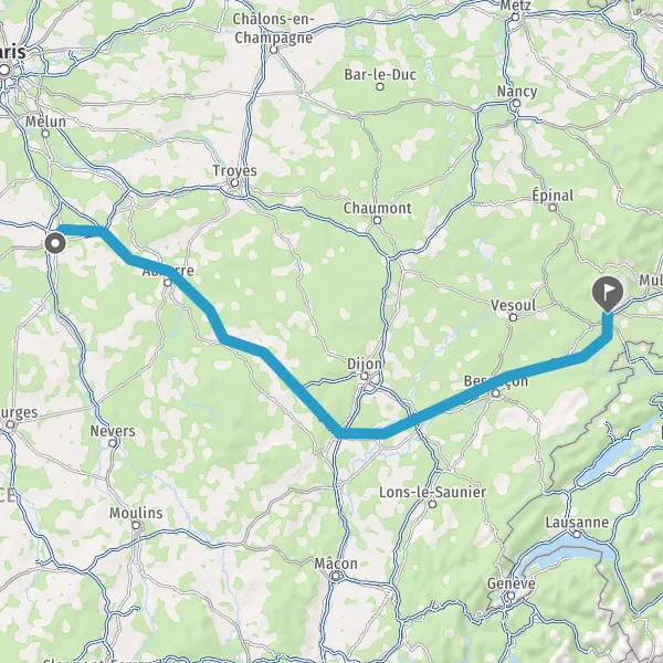 Prendre à droite et rejoindre A36. Continuer sur 180 kilomètres