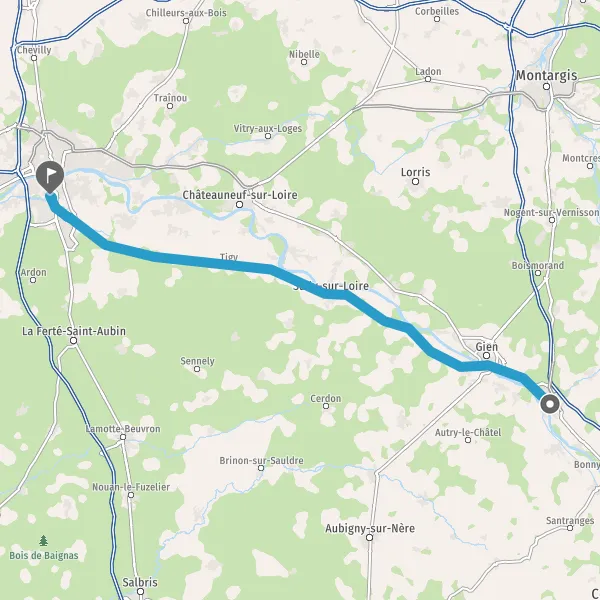 Au rond-point, prendre la 2ème sortie sur D951 (Route d'Orléans) et continuer sur 13 kilomètres