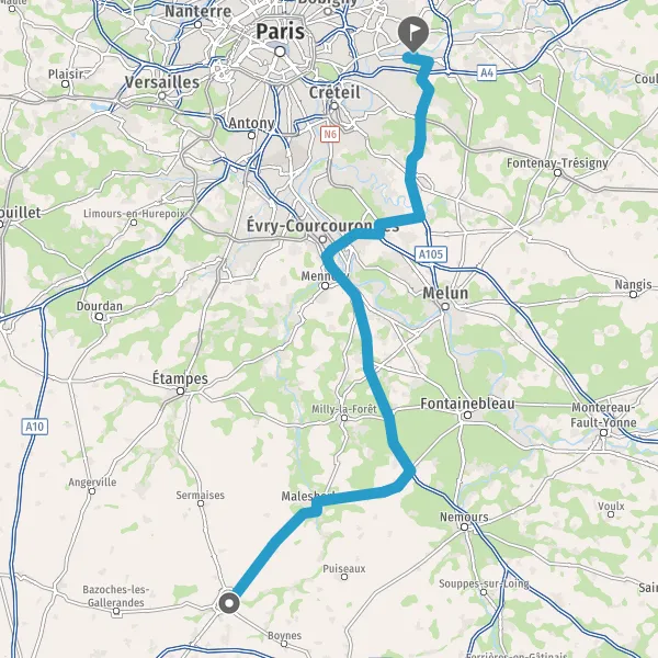 Prendre à droite et rejoindre N104 (La Francilienne). Continuer sur 6,2 kilomètres