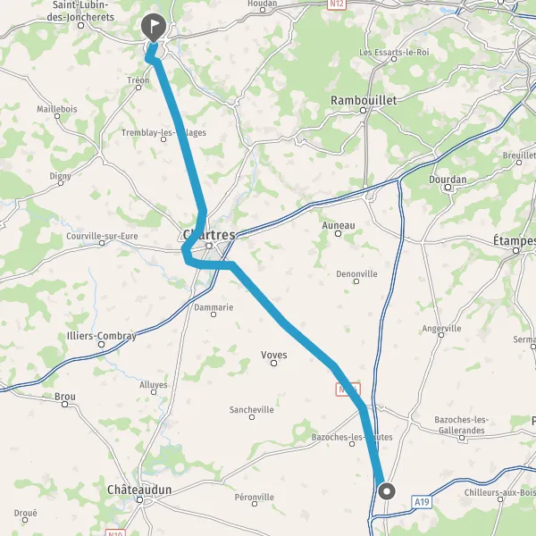 Au rond-point, prendre la 1ère sortie sur D954 (Route de Chartres) et continuer sur 1,6 kilomètre