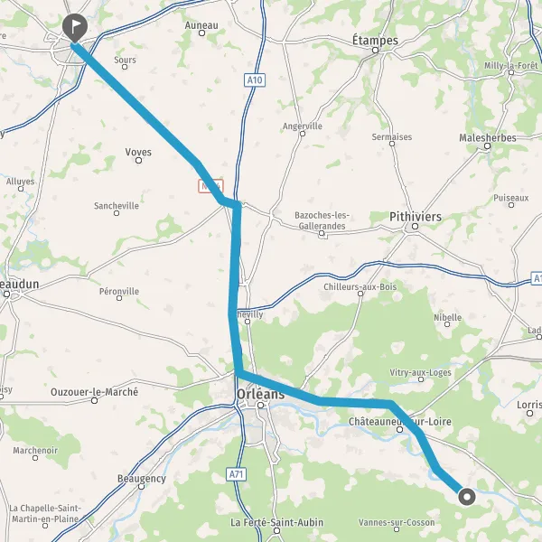 Tourner à gauche sur D60 (Rue Orléanaise) et continuer sur 4,6 kilomètres