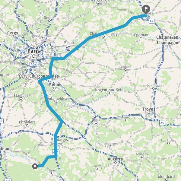 Tourner légèrement à droite sur A6 E15 et continuer sur 50 kilomètres