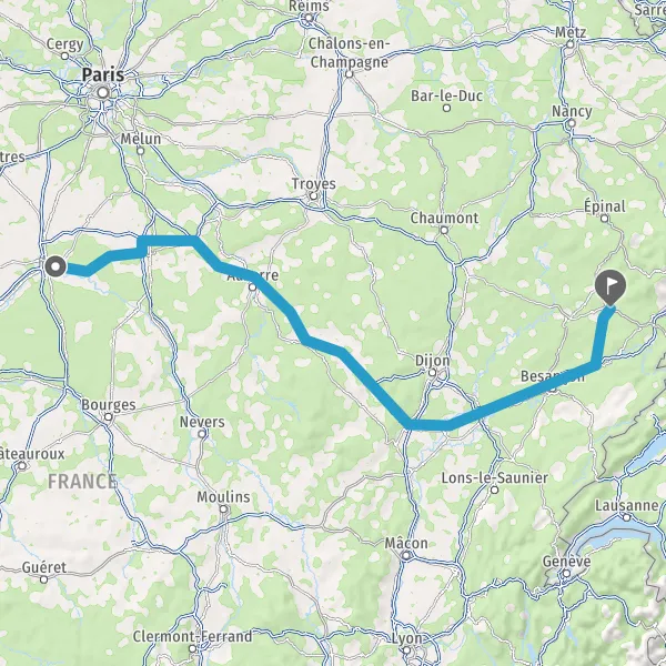 Prendre à droite et rejoindre A36. Continuer sur 125 kilomètres